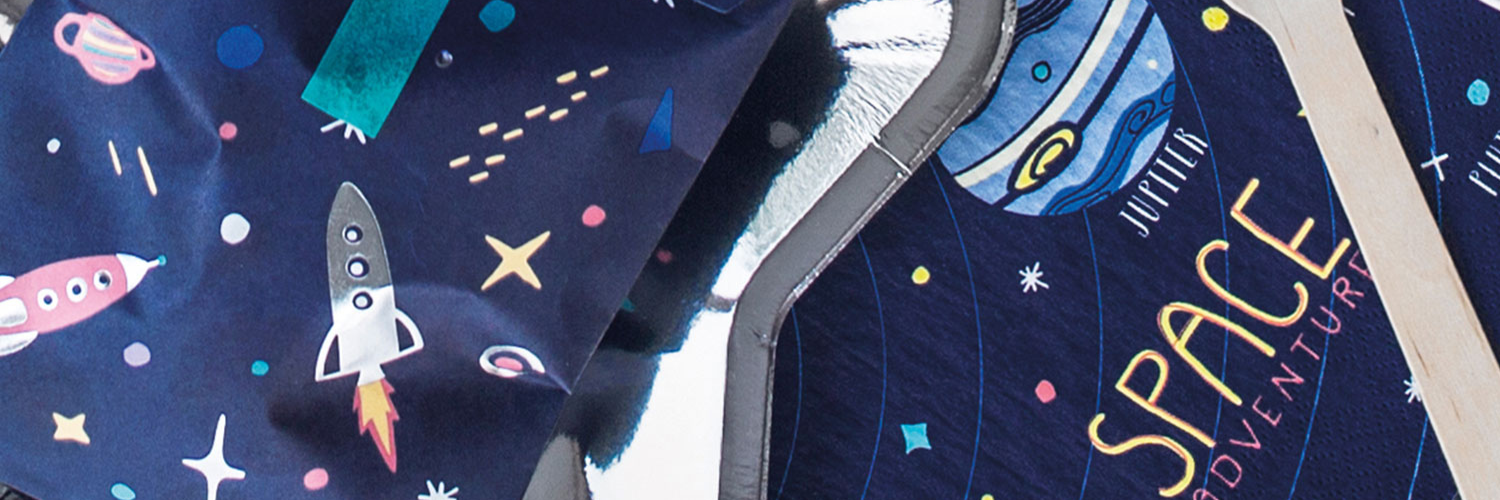Sätt på raketen och lyft iväg till ett riktigt rymdkalas! Vår rymddekorationer, med planeter, stjärnor och raketer, gör varje födelsedag till en intergalaktisk upplevelse.