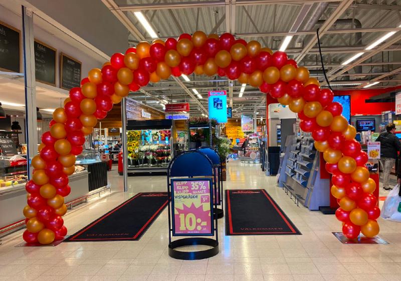 Skapa en välkomnande entré med en ballongbåge i ditt företags färger eller efter säsong. Perfekt om du vill dekorera butiksentrén för ert jubileum! Ska ni ha ett företagsevent ballongbågar en festlig dekoration för både kunder och anställda.