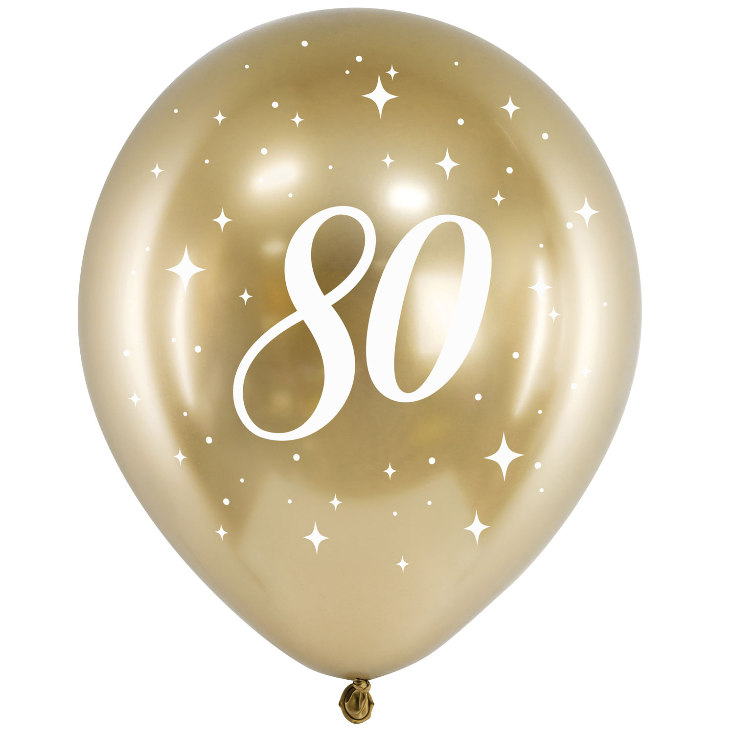 Detta eleganta ballongpaket innehåller 6 guldfärgade ballonger med vitt tryck av siffran "80" och dekorativa stjärnor – perfekt för att skapa en festlig och minnesvärd atmosfär. Ballongerna passar lika bra till stora kalas som till en mer intim firande och blir en vacker detalj i både dukning och dekoration. Kombinera gärna med andra gulddetaljer för en extra lyxig känsla!