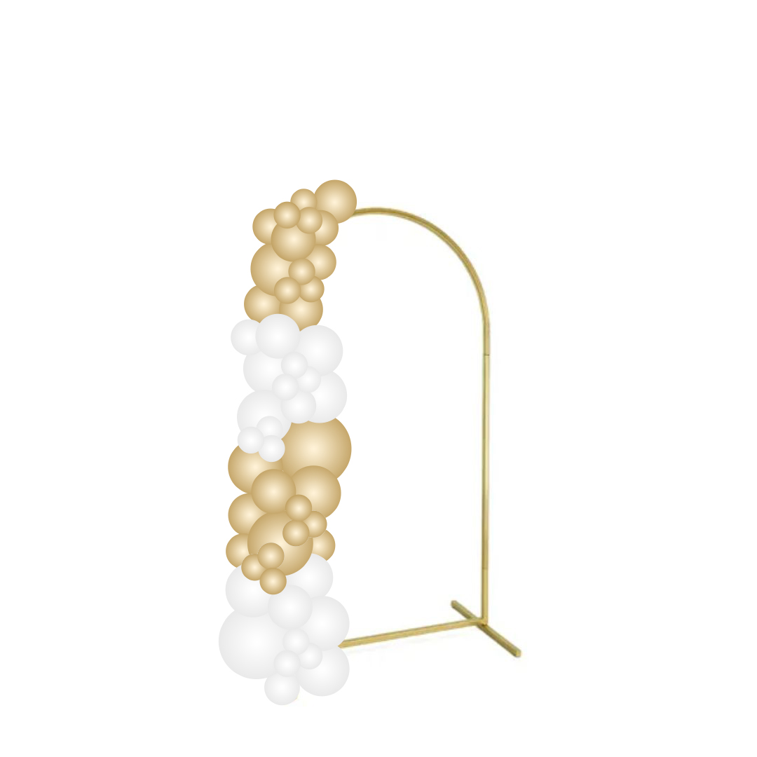 Vår eleganta guldställning tillsammans med en organisk ballonggirlang skapar en levande och festlig känsla som lyfter varje tillställning. Ballongerna varierar i storlek och ger dekoren ett mjukt och exklusivt uttryck – perfekt som bakgrund vid fester, dop, bröllop och events. Varje girlang anpassas och blir helt unik för just din fest! Här hittar du färger att välja på.