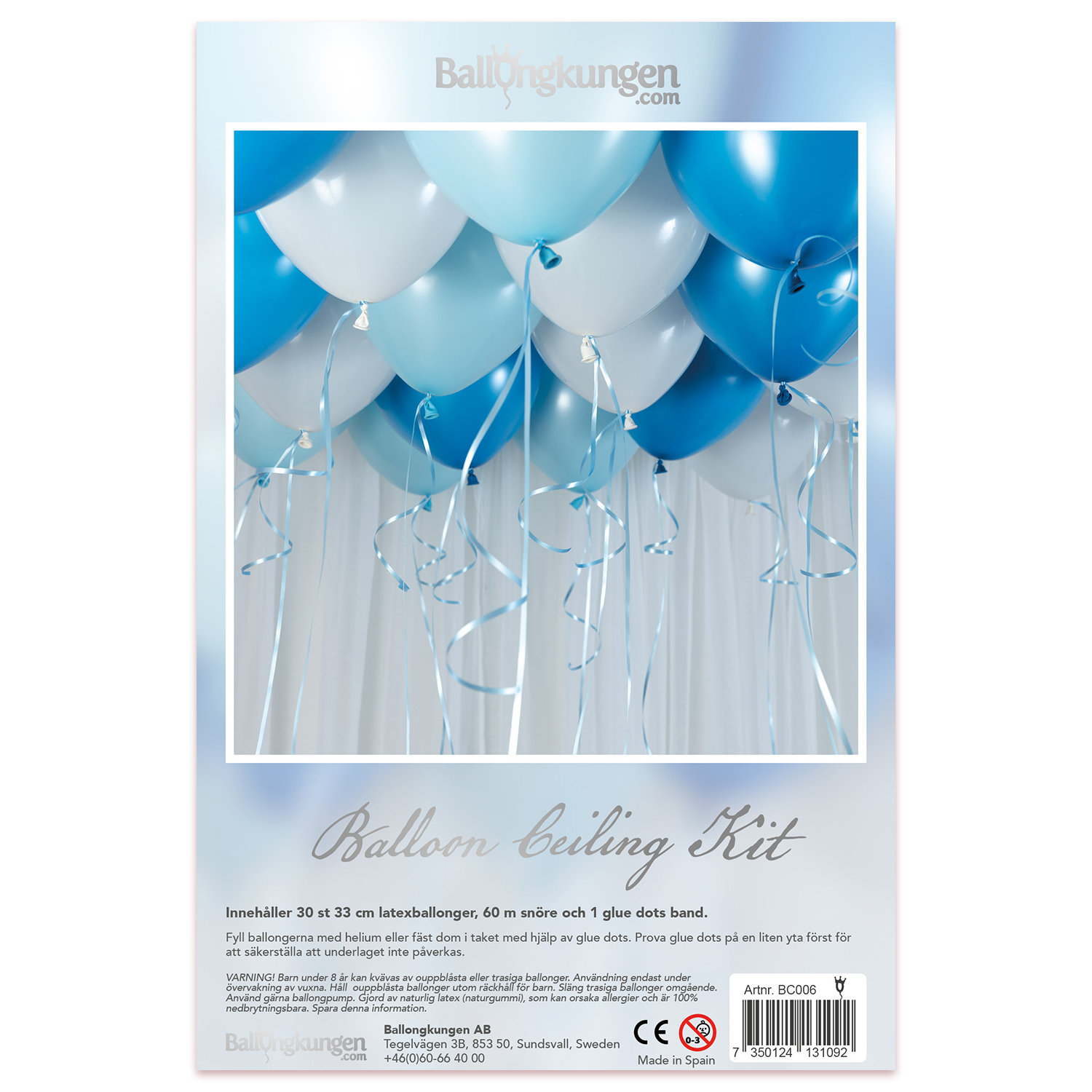Skapa en stämningsfull och festlig dekoration med detta ballongkit. Kitet innehåller totalt 30 ballonger – med en färgkombination som passar perfekt till allt från födelsedagar till babyshower. För att göra dekorationen enkel och smidig medföljer 60 meter dekorativt snöre, samt glue dots för att fästa ballongerna om du väljer att blåsa upp dem med luft. Vill du hellre skapa en svävande effekt? Fyll ballongerna med helium och låt dem sväva fritt i taket för en riktigt festlig känsla.