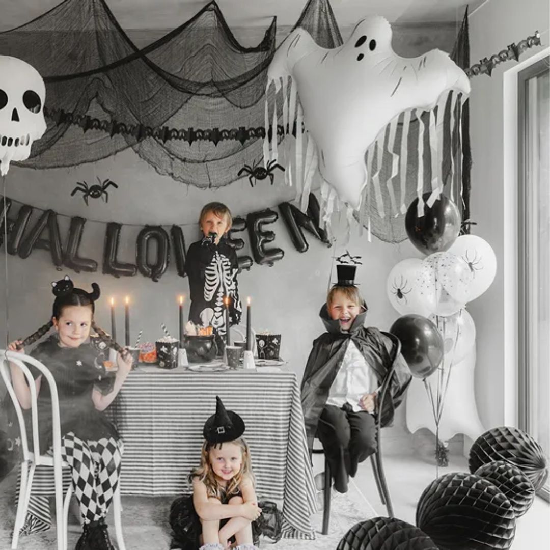 Ge halloweenlooken det där lilla extra med detta svarta diadem med en liten svart hatt prydd med fladdermöss! Diademet är bekvämt att bära för barn och blir en rolig och lekfull detalj till halloweenfesten, maskerad eller temakalas. Perfekt att kombinera med andra halloweenaccessoarer för en komplett, spökig outfit.