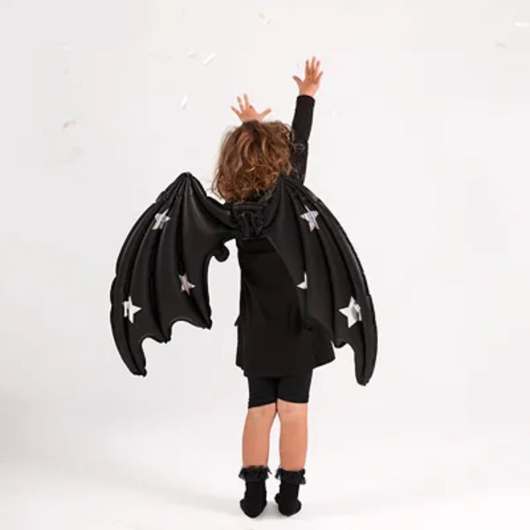 Svarta folievingar för barn – Perfekt för halloween eller andra temakalas! Dessa lätta och bekväma vingar är enkla att bära under längre perioder, vilket gör dem idealiska för barn som vill ha en rolig utklädnad samtidigt som den inte begränsar lek!