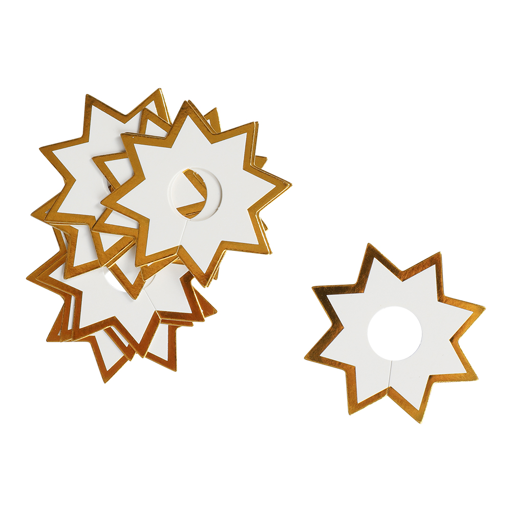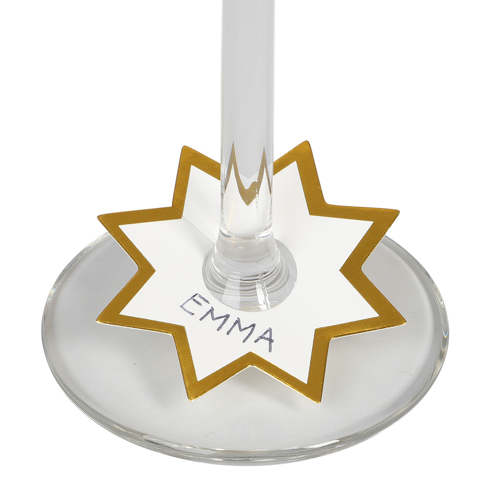 Håll koll på glasen med dessa eleganta glasmarkerare i vitt och guld! Perfekta för middagar, fester och andra tillställningar där du vill undvika förväxlingar. Skriv enkelt gästernas namn på markören och fäst den på glasets kant – en både praktisk och dekorativ detalj som lyfter dukningen.