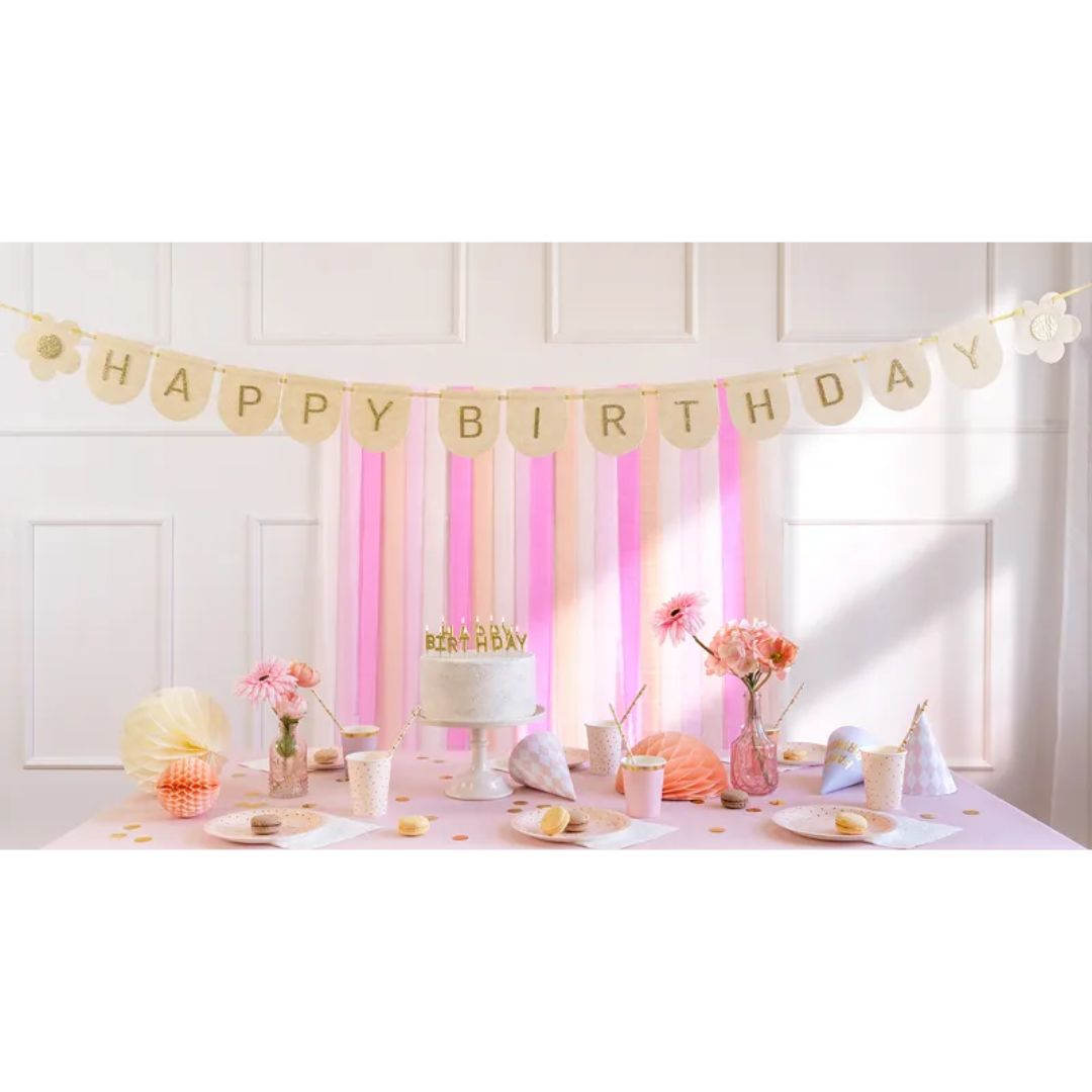 Söt banner till födelsedagsfesten i filttyg! Med sin charmiga design och välgjorda detaljer blir den en perfekt dekoration för att fira en speciell dag. Häng den över bordet, i dörröppningen eller längs en vägg för att skapa en härlig backdrop till dina foton. Passar utmärkt för barnkalas i olika teman! Kombinera den gärna med andra dekorationer i liknande toner för en genomtänkt och harmonisk stil.