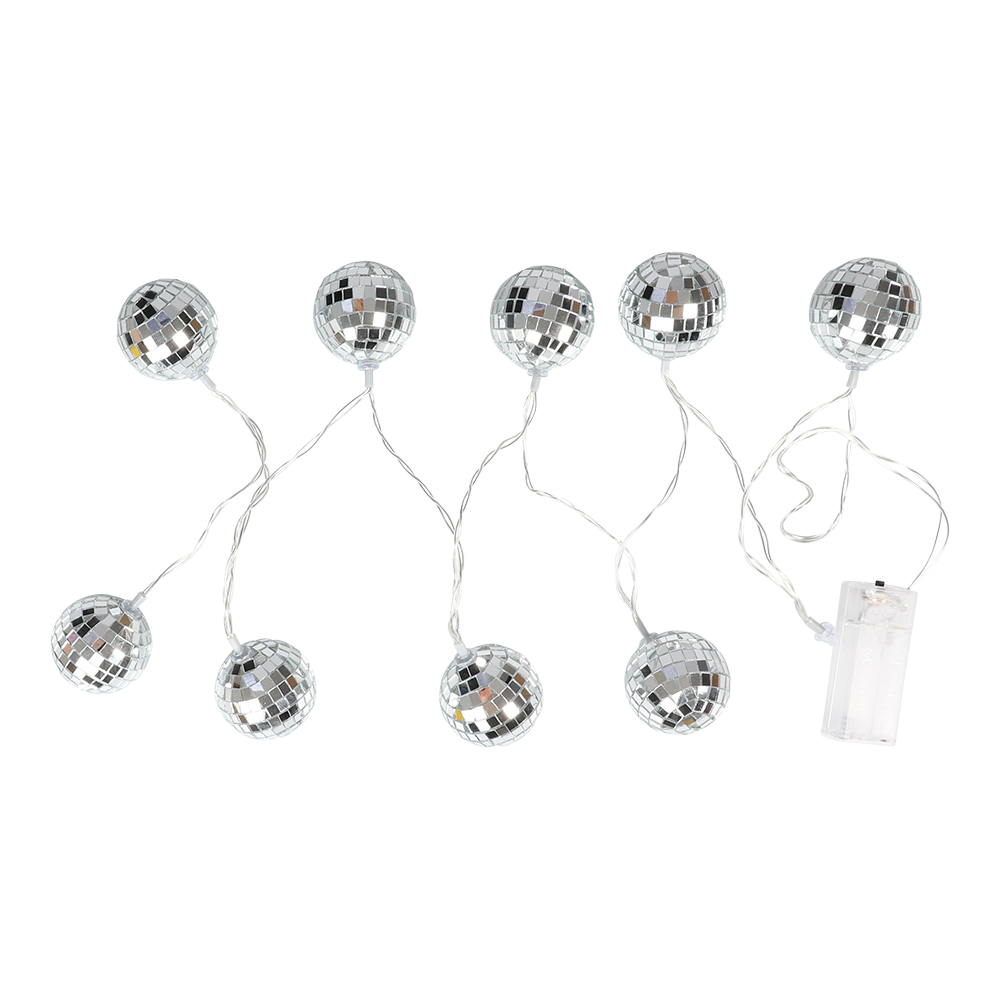 Denna ljusslinga med 10 färgglada discokulor låter dig enkelt sätta rätt feststämning. Välj mellan olika färger och ljusinställningar för att få precis den känsla du vill ha, perfekt för fester, temakvällar eller för att ge rummet en färgstark touch. Enkel att använda med ON/OFF-funktion och batteridriven, vilket gör att du kan placera den var du vill utan krångel med sladdar.