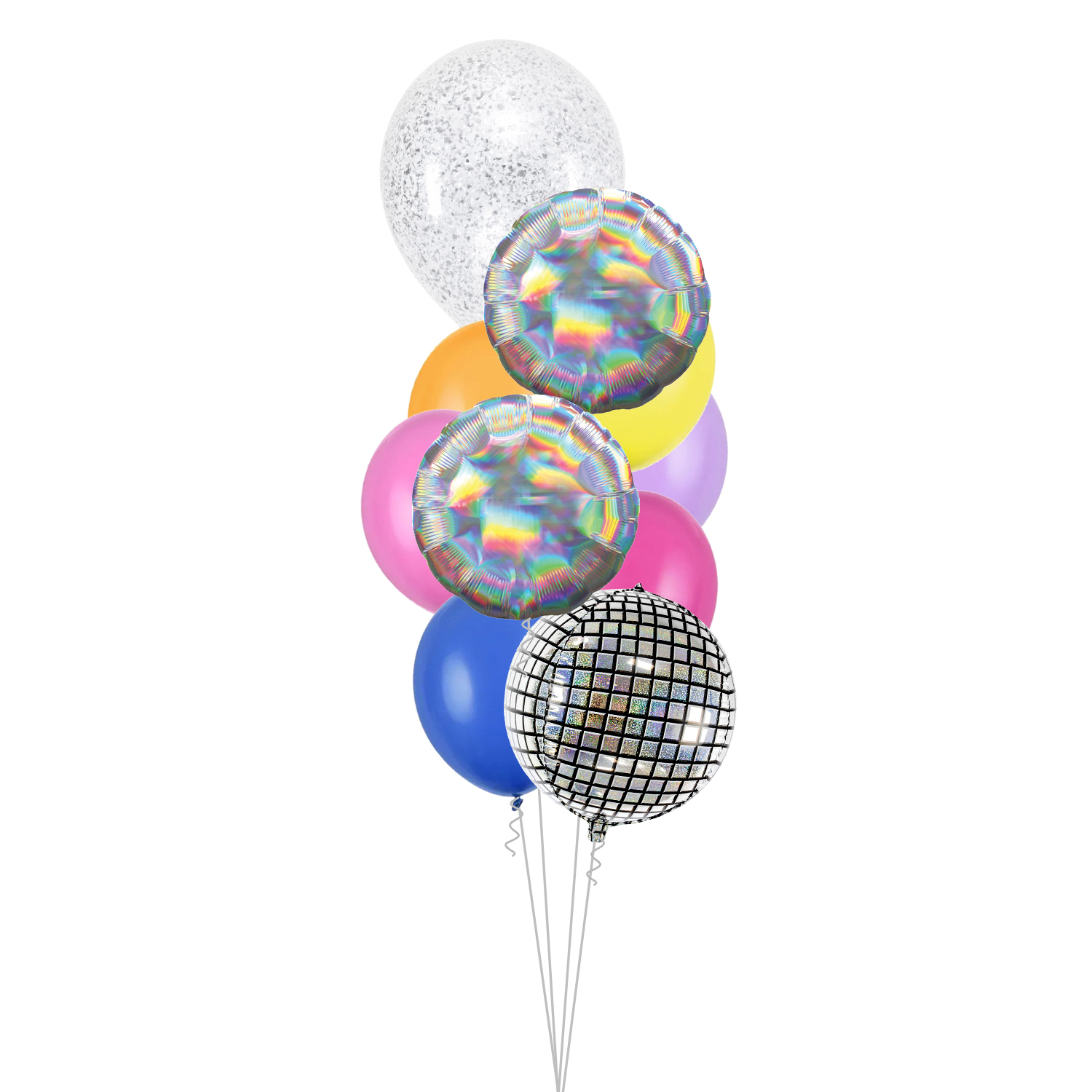 En härlig bukett med latexballonger, folieballonger och konfettiballong som pricken över i:et! Perfekt dekoration för en färgglad mello-fest!