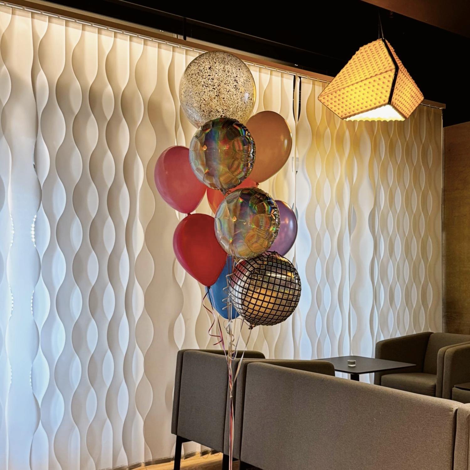 Innehåller: Samtliga ballonger fyllda med helium, matchande snöre och ballongtyngd.