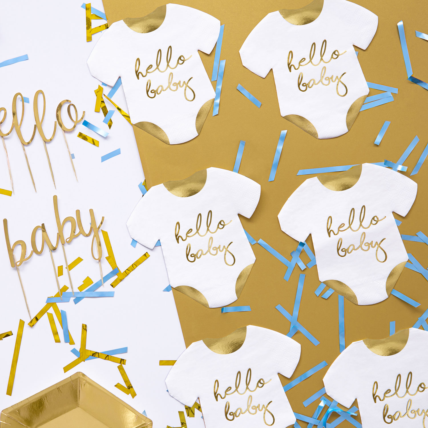 Supersöta servetter med texten "Hello Baby" till nyblivna föräldrar, till en elegant babyshower eller varför inte till namngivningsceremoni eller dop! Tryck på en sida.