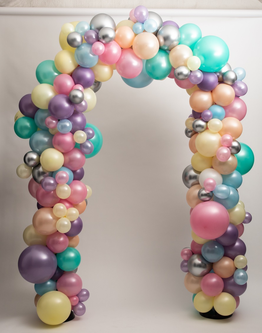 En organisk ballongbåge/backdrop har ballonger i olika storlekar som tillsammans skapar en levande känsla och varje båge blir unik - perfekt som större dekor på fester och tillställningar!