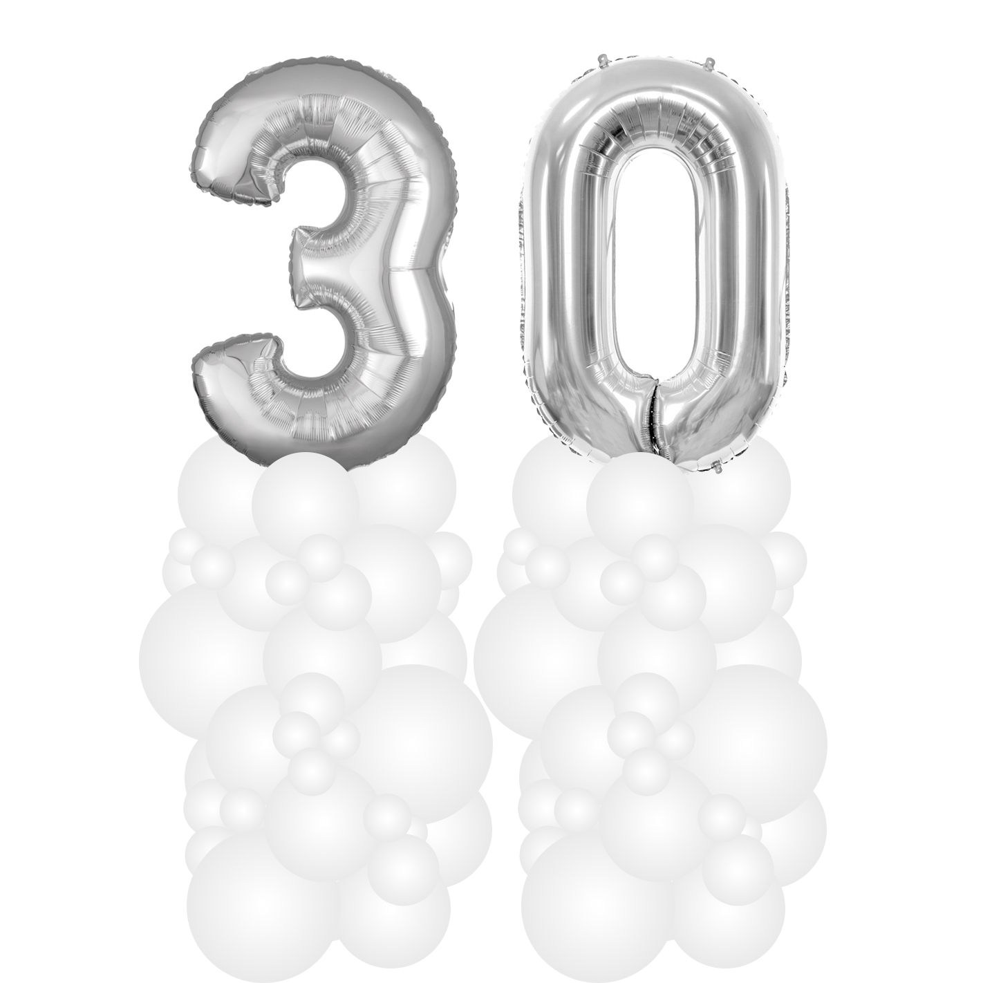 En mini variant av vår organiska ballongpelare med stor foliesiffra i toppen.