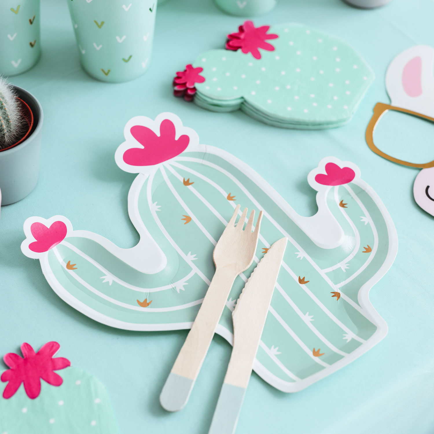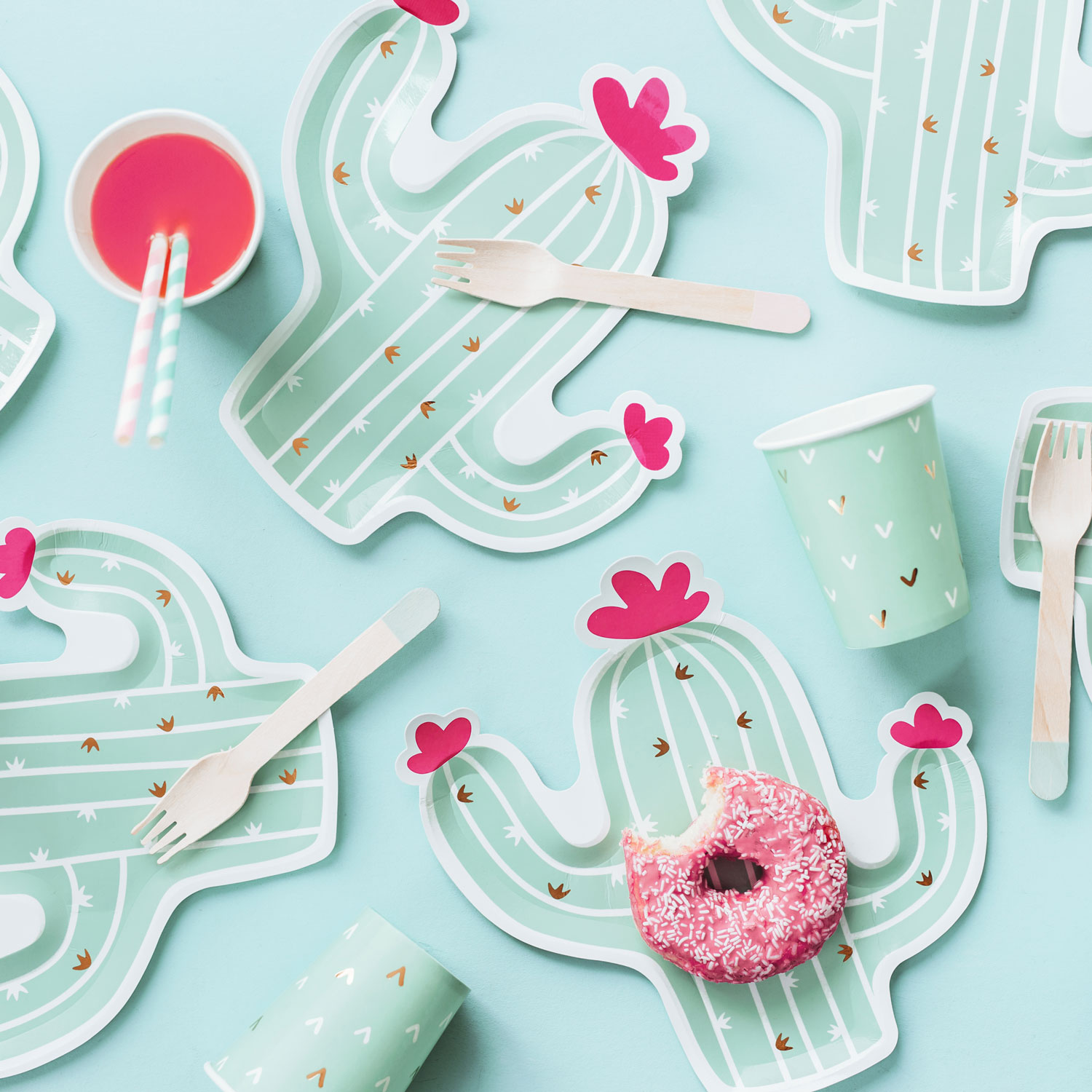 Dessa superfina papperstallrikar i form av en kaktus är perfekta för att ge ditt kalas eller fest en rolig och trendig twist! Med sin lekfulla design och fräscha färger passar de perfekt till sommarfester, tropiska temakalas eller födelsedagsfiranden. Tallrikarna är både praktiska och dekorativa, vilket gör dem till ett självklart val för en festlig och personlig dukning. Låt dessa kaktusformade tallrikar bli en härlig och minnesvärd detalj på ditt nästa event!