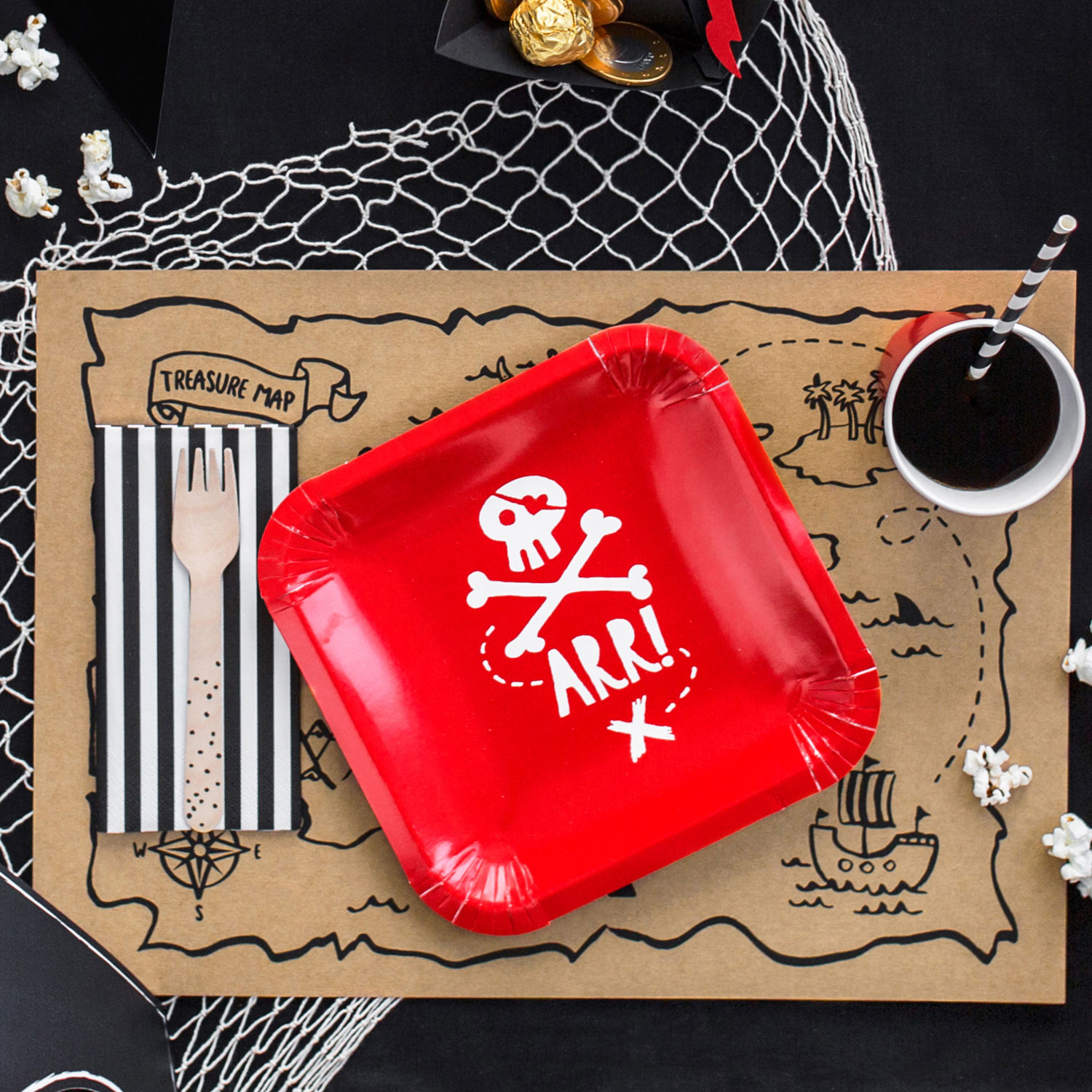 Ställ till med ett riktigt sjöslag och låt barnen leva rövare! Coola papperstallrikar med pirattema.