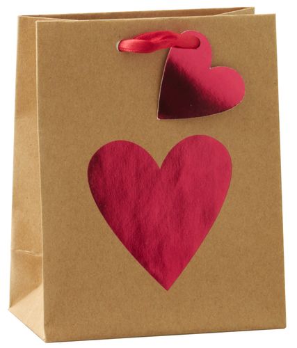 Söt liten påse i brunt med rött hjärta att lägga presenter i. Passar fint till alla hjärtans dag, födelsedagen eller när du bara vill visa någon din uppskattning!