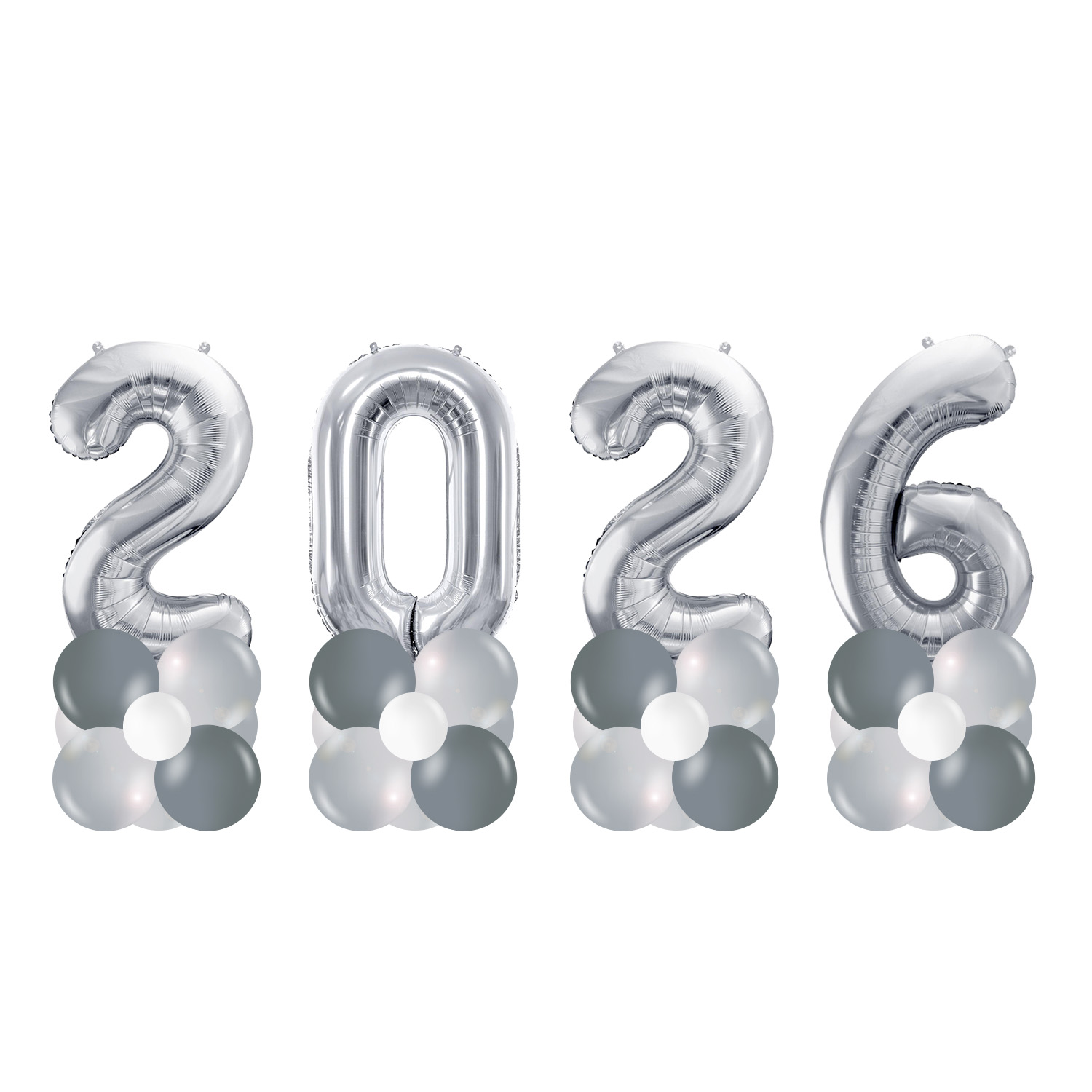 Fin ballongdekor i 4 delar till nyårsfesten inför 2026! Ballongdekoren innehåller 4st foliesiffror med bas av latexballonger.