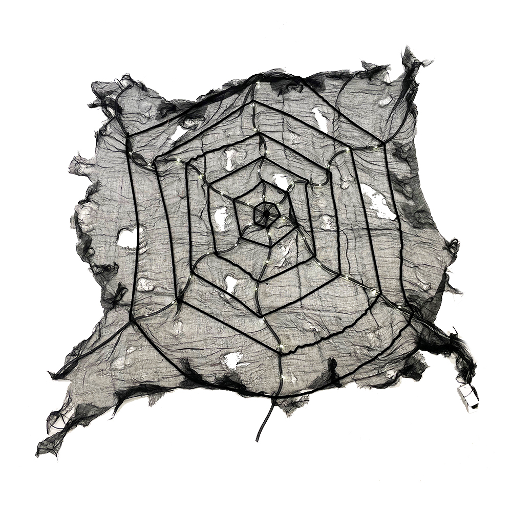 Detta spindelnät med lampor och små spindlar blir snabbt en iögonfallande detalj i halloweenpyntet. Häng det på väggen, i fönstret eller över dörröppningen och låt de lysande lamporna framhäva nätets spindeltema. En lekfull och spöklik dekoration som ger hemmet en perfekt halloweenkänsla och imponerar på både barn och vuxna!